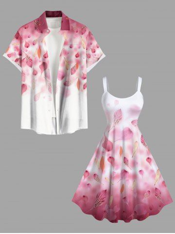 Leaf Ombre Colorblock Print Plus Size Matching Hawaii Beach Outfit For Couples - Light Pink