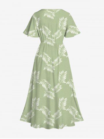 Leaf Print Plus Size Matching Hawaii Beach Outfit For Couples - Light Green