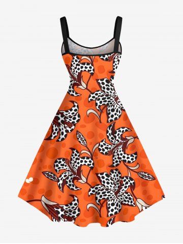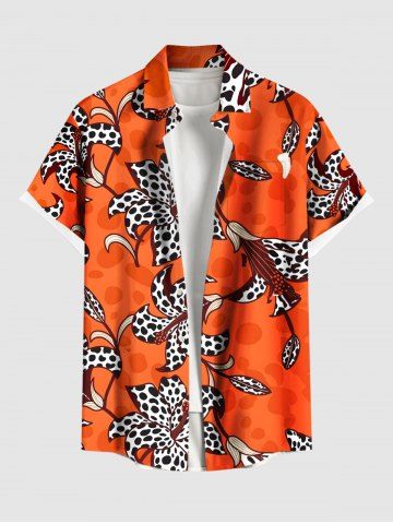 Leopard Hibiscus Flower Leaf Print Plus Size Matching Hawaii Beach Outfit For Couples - Orange