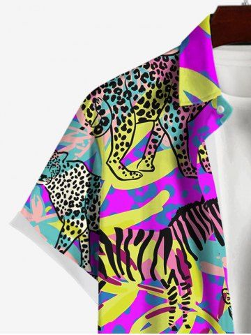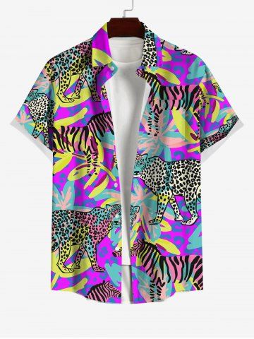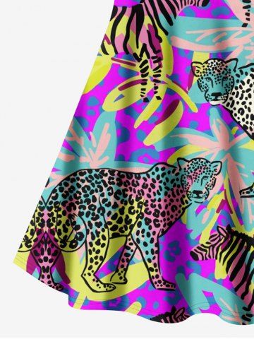 Leopard Zebra Tropical Colorful Leaf Print Plus Size Matching Hawaii Beach Outfit For Couples - Multi-a