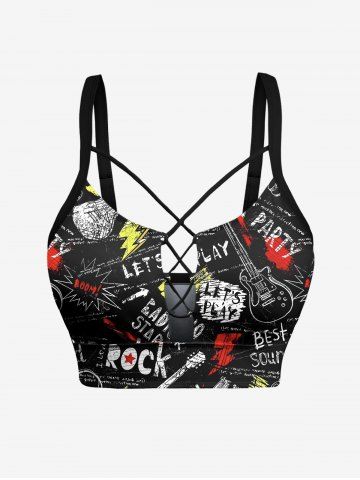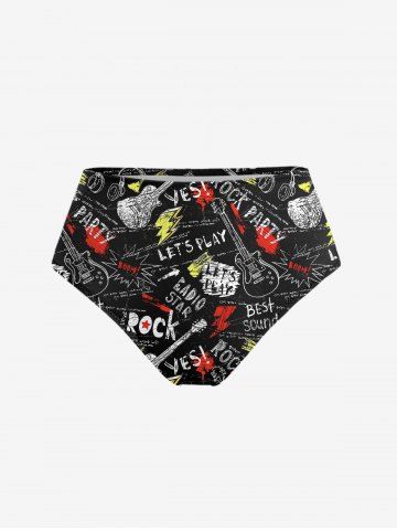 Letters Guitar Graffiti Print Shirt Swimsuit Plus Size Matching Hawaii Beach Outfit For Couples - Black
