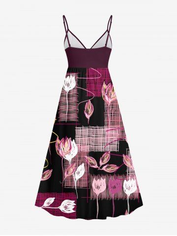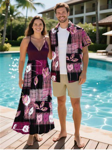 Matching Hawaiian Outfits > Line Braided Plaid Flower Print Plus Size Matching Hawaii Beach Outfit For Couples
