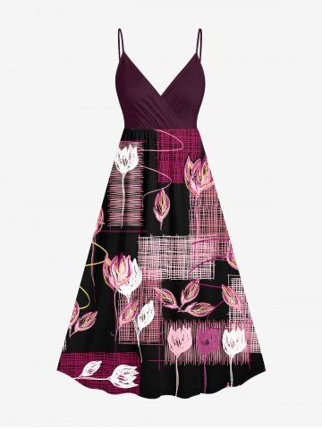 Line Braided Plaid Flower Print Plus Size Matching Hawaii Beach Outfit For Couples - Red