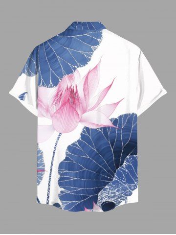 Lotus Flower Leaf Print Plus Size Matching Hawaii Beach Outfit For Couples - Blue