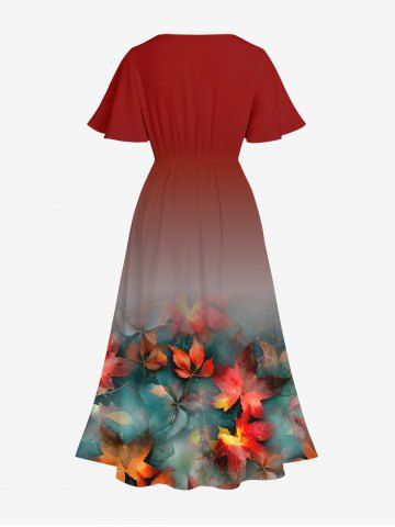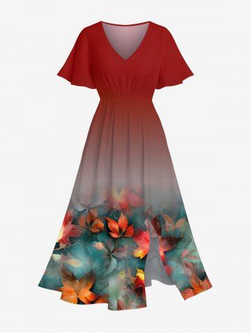 Maple Leaves Print Plus Size Matching Hawaii Beach Outfit For Couples - Red