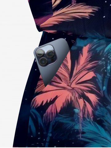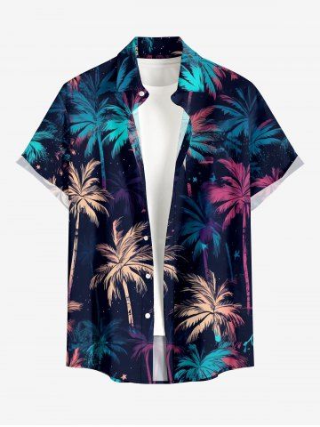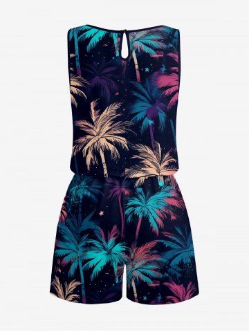 Matching Hawaii Shirt and Romper Plus Size Beach Outfit Coconut Tree Galaxy Print For Couples - Deep Blue