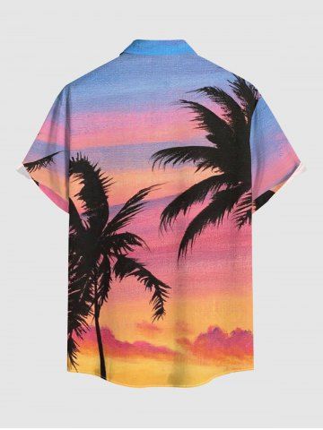 Matching Hawaii Shirt and Romper Plus Size Beach Outfit Coconut Tree Ombre Sky Cloud Printed for Couples - Pink
