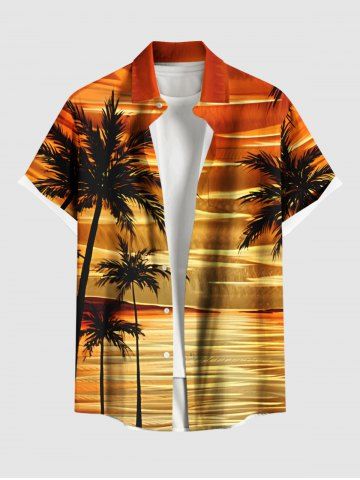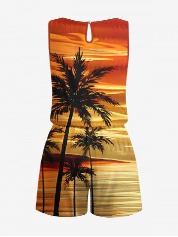 Matching Hawaii Shirt and Romper Plus Size Beach Outfit Coconut Tree Seascape Printed for Couples - Orange