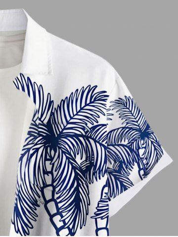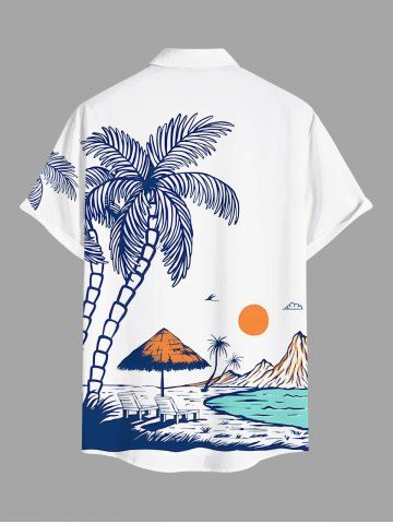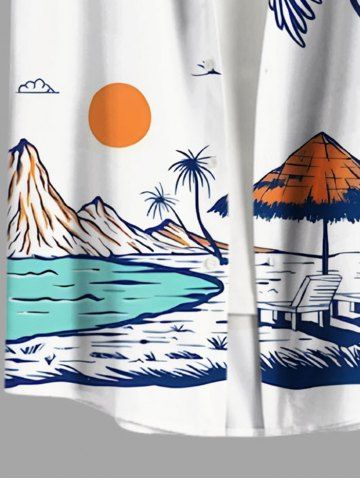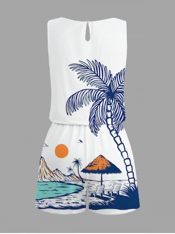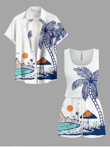 Matching Hawaii Shirt and Romper Plus Size Beach Outfit Coconut Tree Sun Mountain Seascape Printed for Couples - White