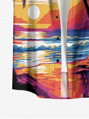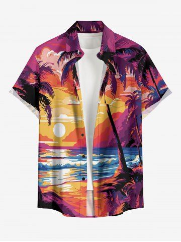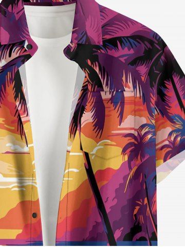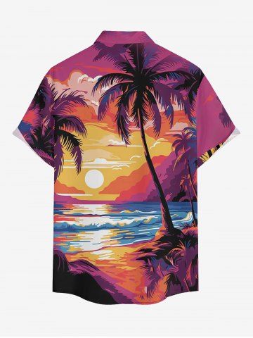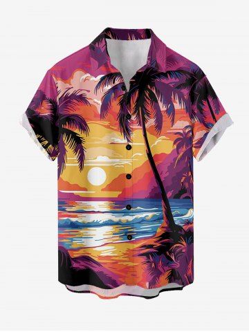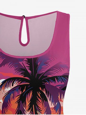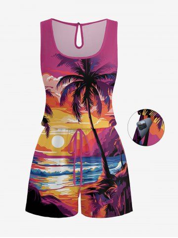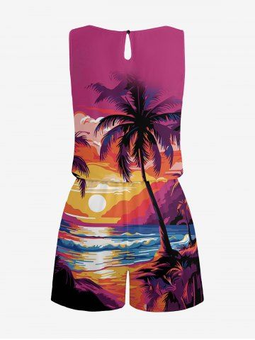 Matching Hawaii Shirt and Romper Plus Size Beach Outfit Coconut Tree Sun Seascape Printed for Couples - Rose Red