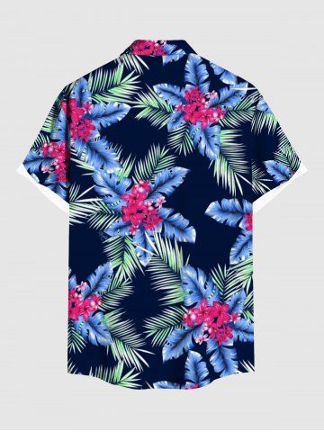 Matching Hawaii Shirt and Romper Plus Size Beach Outfit Coconut Tree Tropical Leaf Flower Print For Couples - Black