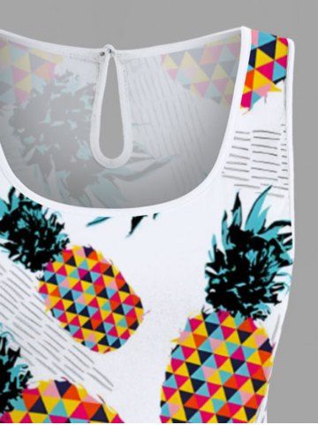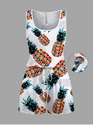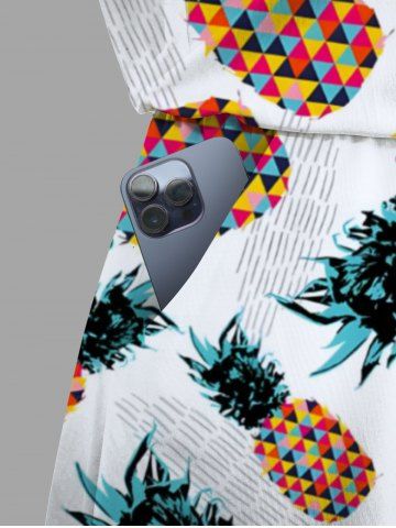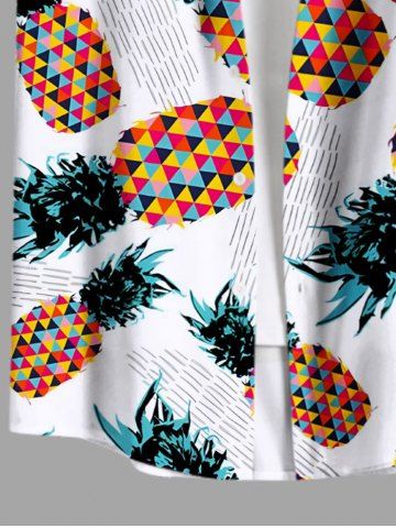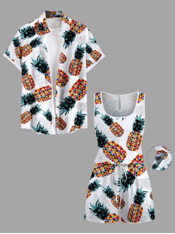 Matching Hawaii Shirt and Romper Plus Size Beach Outfit Colorful Geometric Colorblock Pineapple Print For Couples - White