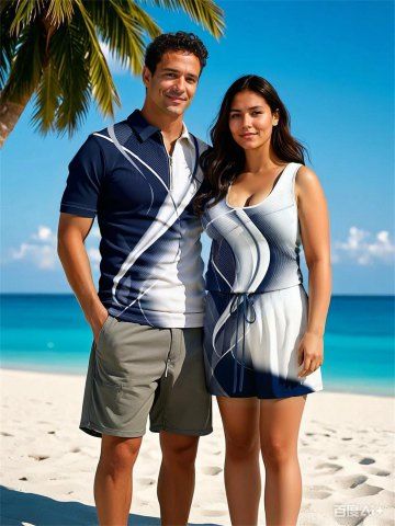 Matching Hawaiian Outfits > Matching Hawaii Shirt and Romper Plus Size Beach Outfit Curve Ombre Light Beam Print For Couples