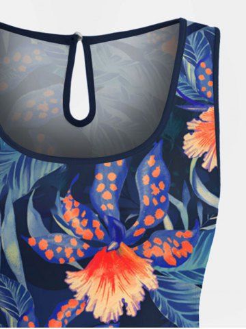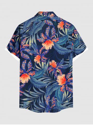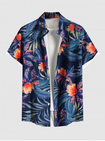 Matching Hawaii Shirt and Romper Plus Size Beach Outfit Flowers Dots Leaf Printed for Couples - Blue