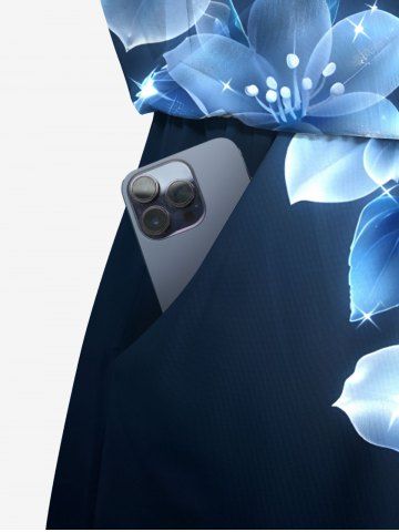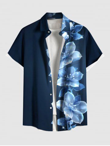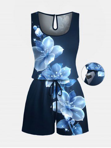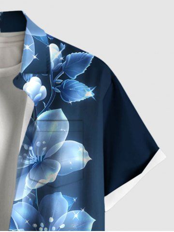 Matching Hawaii Shirt and Romper Plus Size Beach Outfit Flowers Glitter 3D Printed for Couples - Blue