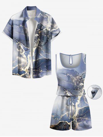 Matching Hawaiian Outfits > Matching Hawaii Shirt and Romper Plus Size Beach Outfit Satellite Map Galaxy Printed for Couples