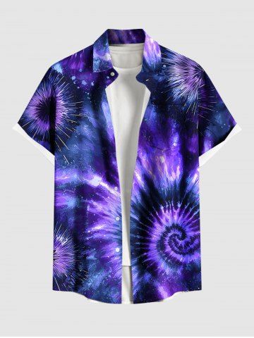 Matching Hawaii Shirt and Romper Plus Size Beach Outfit Spiral Tie Dye Galaxy Print For Couples - Purple