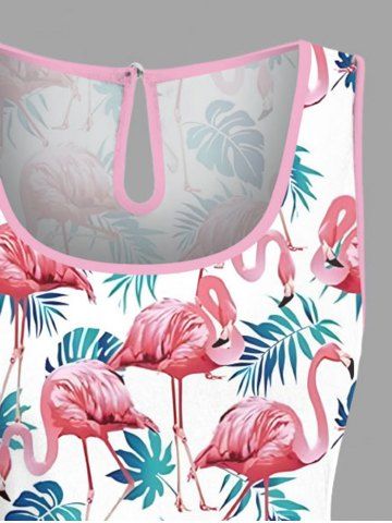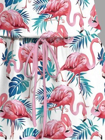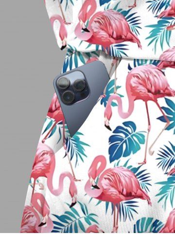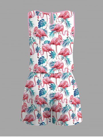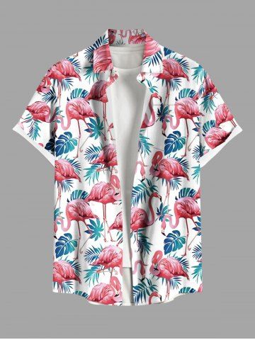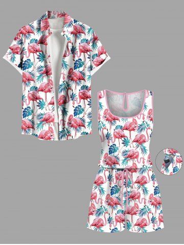 Matching Hawaii Shirt and Romper Plus Size Beach Outfit Tropical Flamingo Tropical Leaf Printed for Couples - White