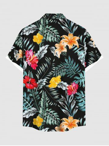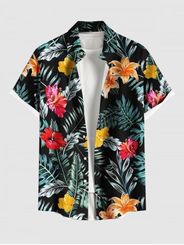 Matching Hawaii Shirt and Romper Plus Size Beach Outfit Tropical Leaf Hibiscus Printed for Couples - Black