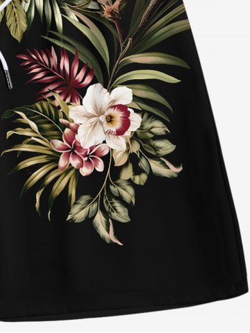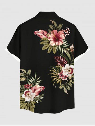 Matching Hawaii Shirt and Romper Plus Size Beach Outfit Tropical Leaf Hibiscus Printed for Couples - Black