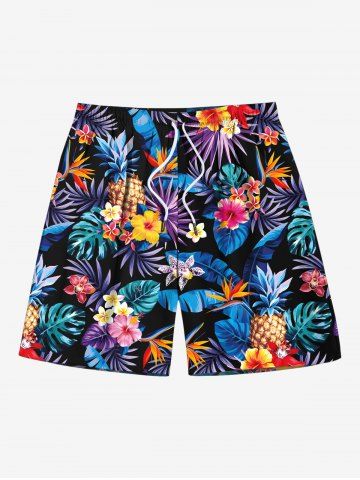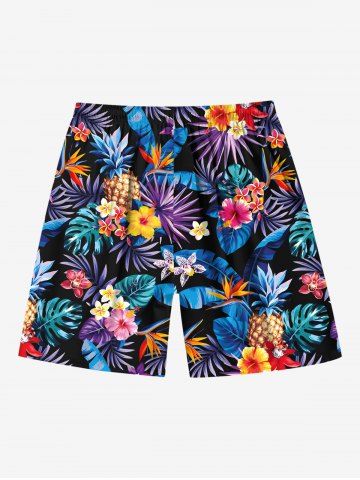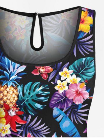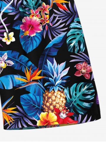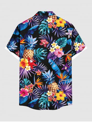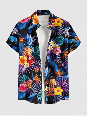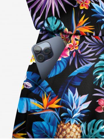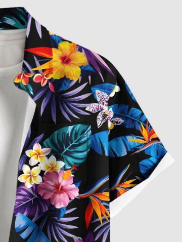 Matching Hawaii Shirt and Romper Plus Size Beach Outfit Tropical Leaf Hibiscus Printed for Couples - Black