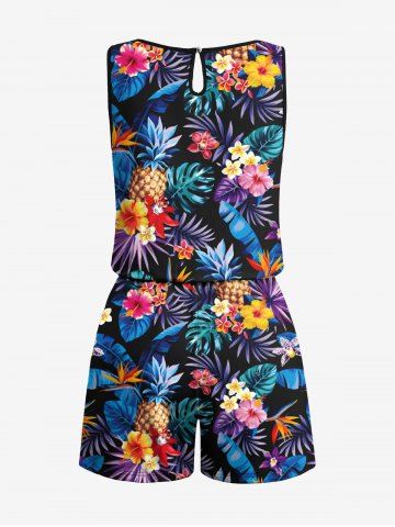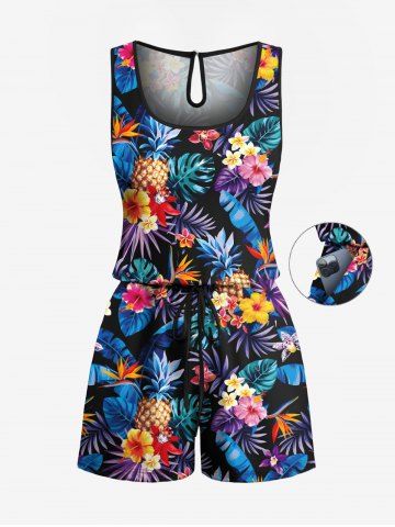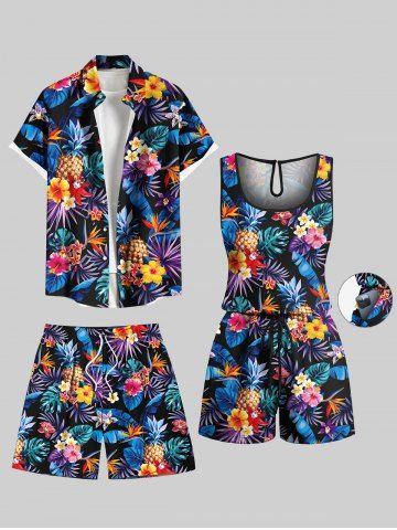 Matching Hawaiian Outfits > Matching Hawaii Shirt and Romper Plus Size Beach Outfit Tropical Leaf Hibiscus Printed for Couples