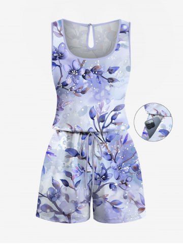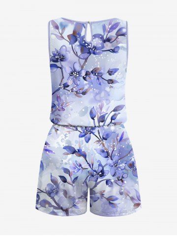 Matching Hawaii Shirt and Romper Plus Size Beach Outfit Tropical Leaf Hibiscus Printed for Couples - Purple