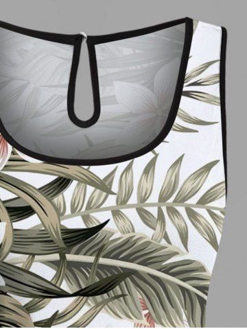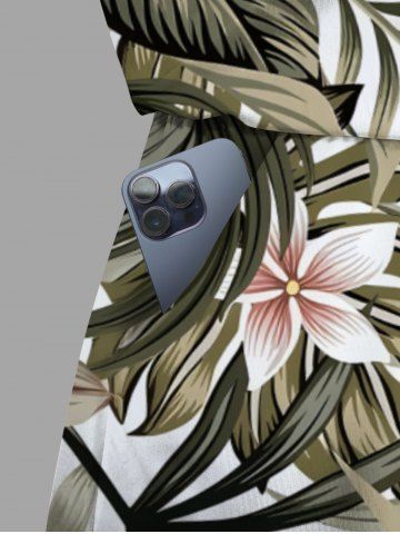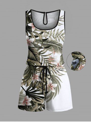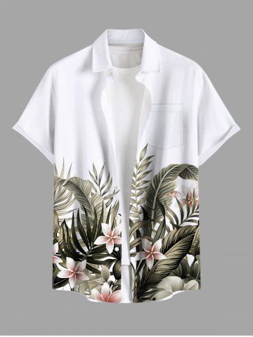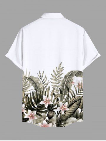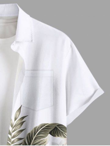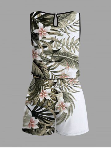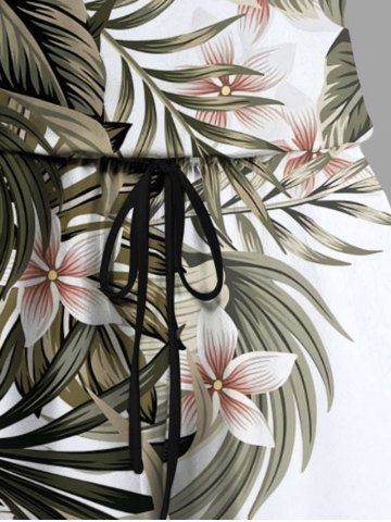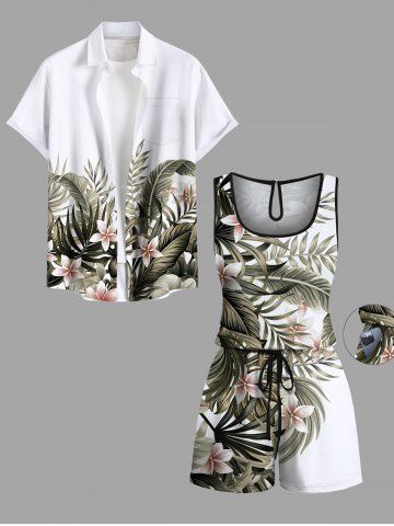 Matching Hawaii Shirt and Romper Plus Size Beach Outfit Tropical Leaf Hibiscus Printed for Couples - White