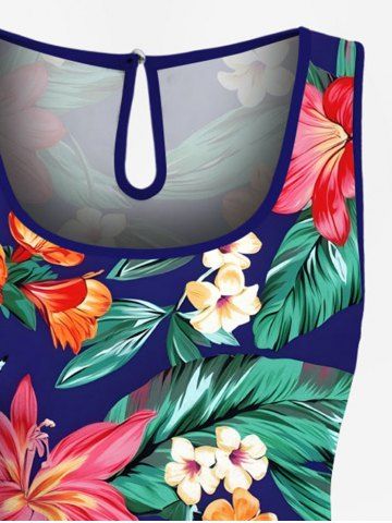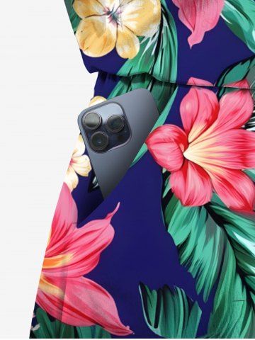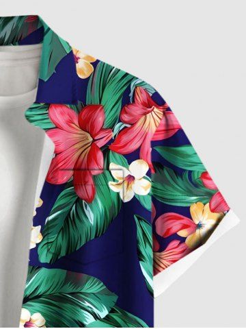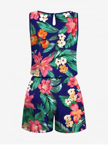 Matching Hawaii Shirt and Romper Plus Size Beach Outfit Tropical Leaf Flower Print For Couples - Blue