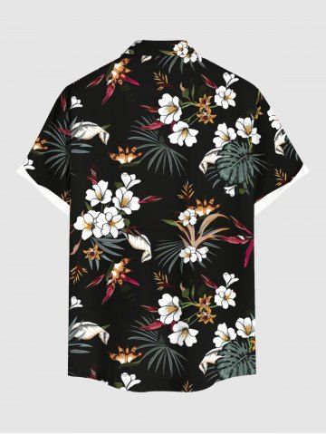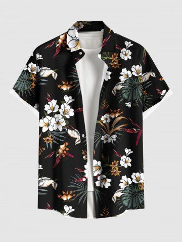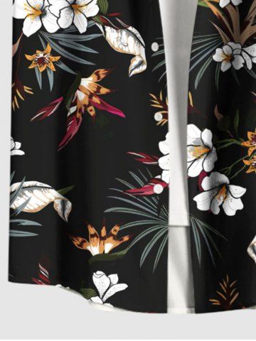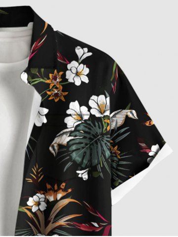 Matching Hawaii Shirt and Romper Plus Size Beach Outfit Tropical Leaf Flower Print For Couples - Black