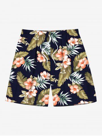 Matching Hawaiian Outfits > Matching Hawaii Shirt Shorts and Romper Plus Size Beach Outfit Tropical Leaf Hibiscus Flower Print For Couples