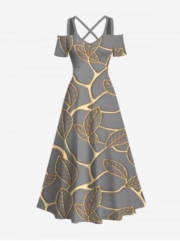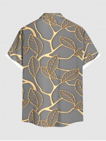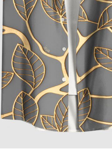 Metallic Leaf Print Plus Size Matching Hawaii Beach Outfit For Couples - Gray