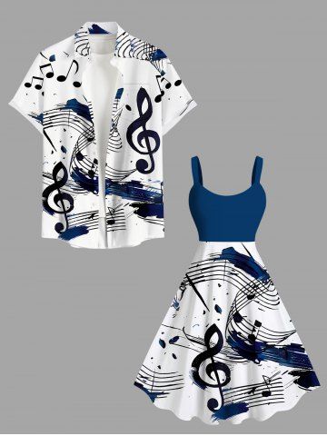 Matching Hawaiian Outfits > Musical Notation Print Plus Size Matching Hawaii Beach Outfit For Couples