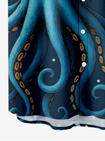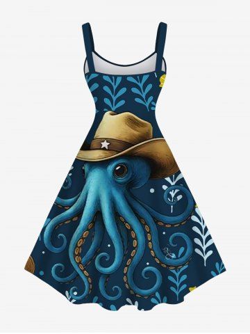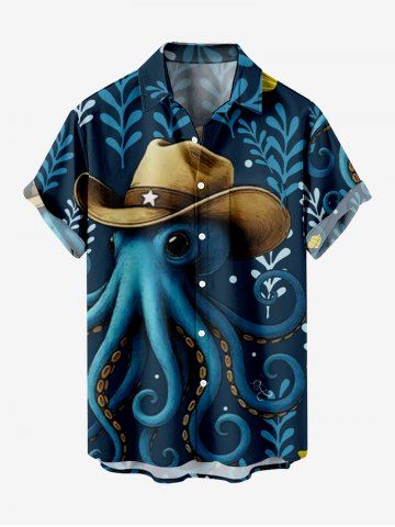 Octopus Hat Leaf Branch Print Plus Size Matching Hawaii Beach Outfit For Couples - Deep Blue