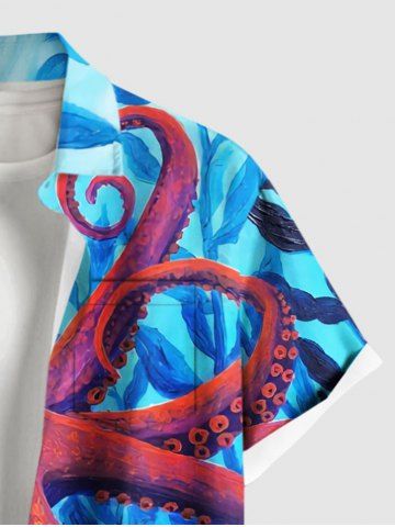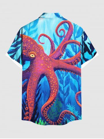 Matching Hawaiian Outfits > Octopus Plant Ombre Seabed Print Plus Size Matching Hawaii Beach Outfit For Couples