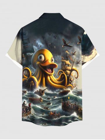 Matching Hawaiian Outfits > Octopus Ship Sea Waves Cruise Print Plus Size Matching Hawaii Beach Outfit For Couples