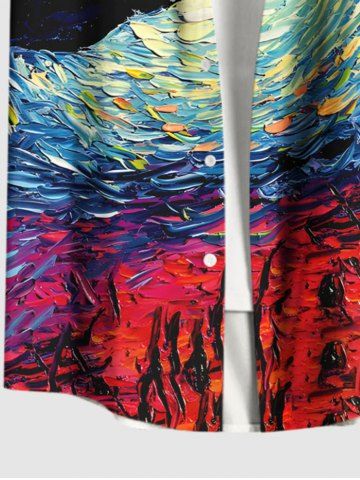 Matching Hawaiian Outfits > Oil Painting Wolf Moon Swirls Print Plus Size Matching Hawaii Beach Outfit For Couples