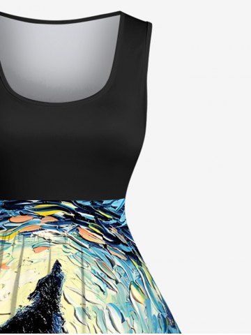 Oil Painting Wolf Moon Swirls Print Plus Size Matching Hawaii Beach Outfit For Couples - Blue
