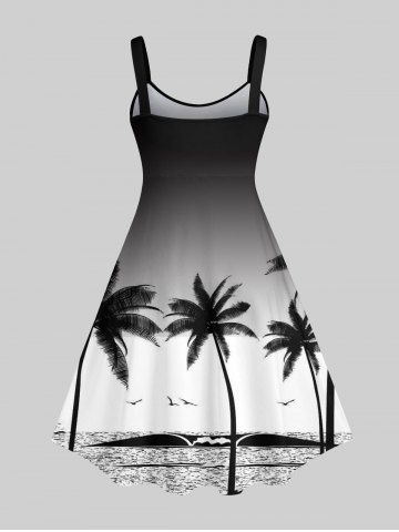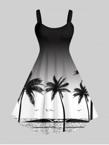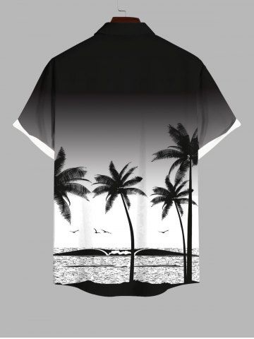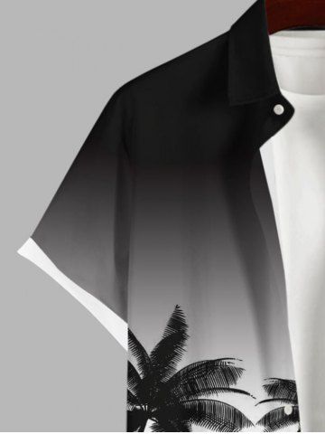 Ombre Colorblock Coconut Tree Sea Print Plus Size Matching Hawaii Beach Outfit For Couples - Black