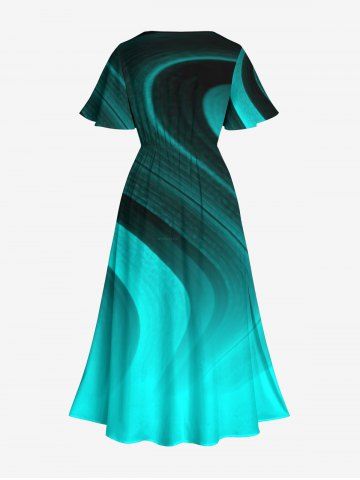 Ombre Colorblock Curve Print Plus Size Matching Hawaii Beach Outfit For Couples - Green