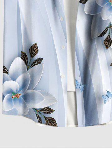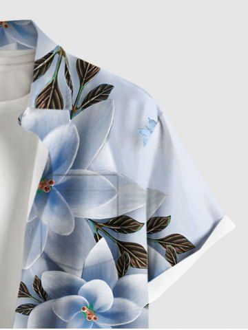 Ombre Flower Leaf Butterfly Print Plus Size Matching Hawaii Beach Outfit For Couples - Powder Blue