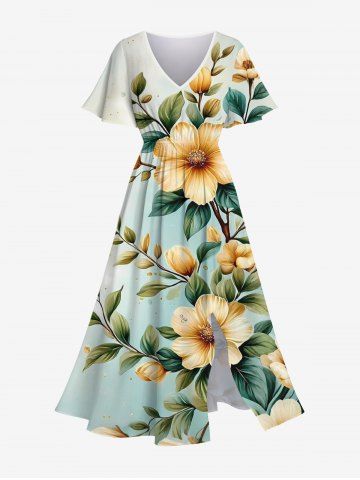 Ombre Flowers Leaf Print Plus Size Matching Hawaii Beach Outfit For Couples - Light Gray
