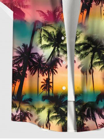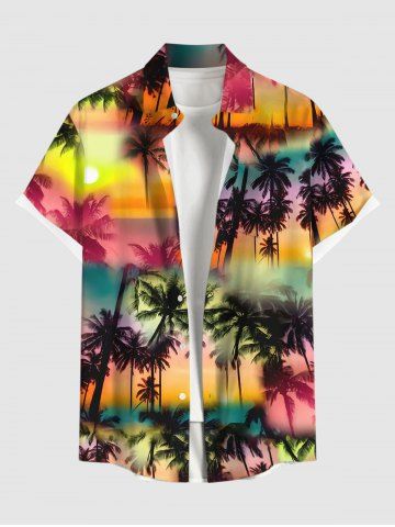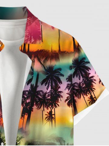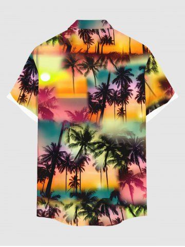 Ombre Galaxy Sun Coconut Tree Print Dress and Button Pocket Shirt Plus Size Matching Hawaii Beach Outfit For Couples
