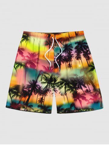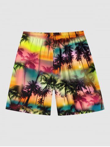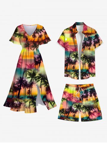 Ombre Galaxy Sun Coconut Tree Print Plus Size Matching Hawaii Beach Outfit For Couples - Multi-a