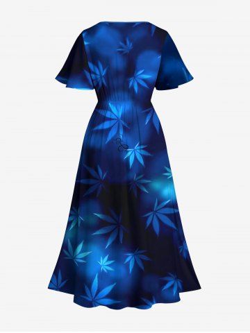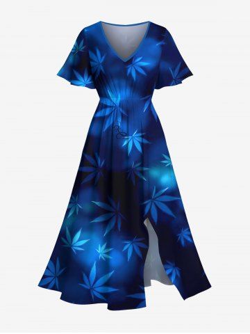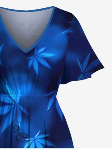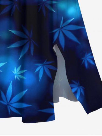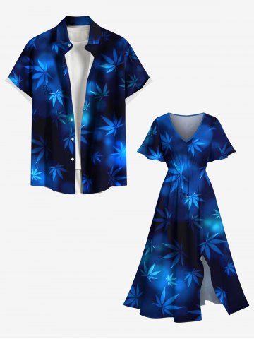 Ombre Maple Leaf Print Plus Size Matching Hawaii Beach Outfit For Couples - Deep Blue