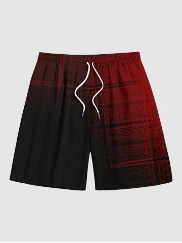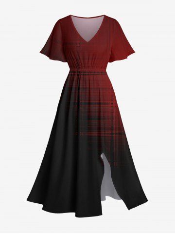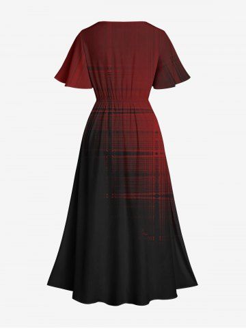 Ombre Plaid Colorblock Print Plus Size Matching Hawaii Beach Outfit For Couples - Deep Red