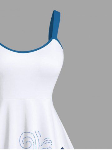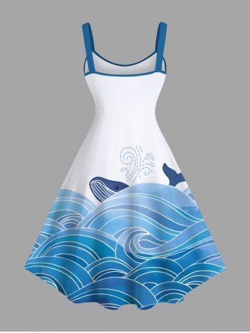 Ombre Sea Wave Shark Print Plus Size Matching Hawaii Beach Outfit For Couples - Blue