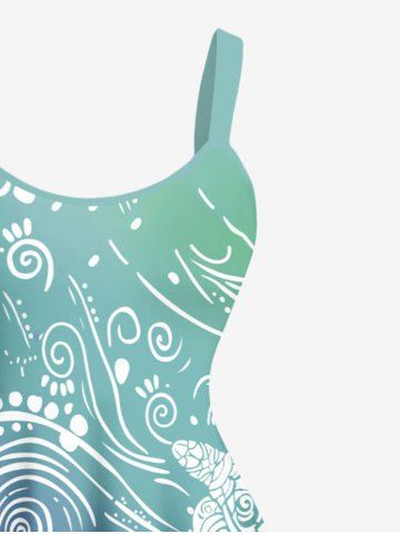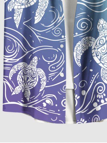 Ombre Sea Waves Turtle Print Plus Size Matching Hawaii Beach Outfit For Couples - Blue