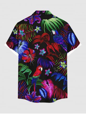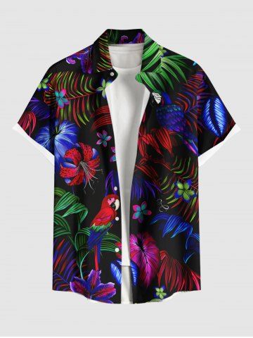 Ombre Tropical Leaf Hibiscus Flower Parrot Print Plus Size Matching Hawaii Beach Outfit For Couples - Black