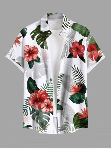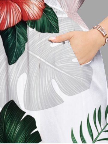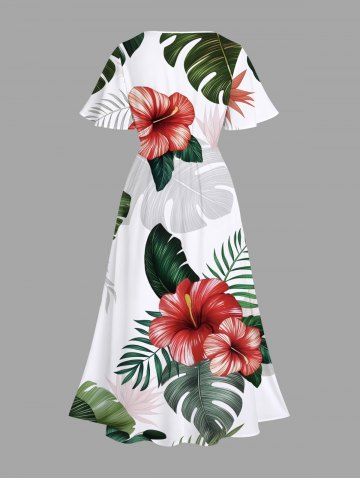 Ombre Tropical Leaf Hibiscus Flower Print Plus Size Matching Hawaii Beach Outfit For Couples - White